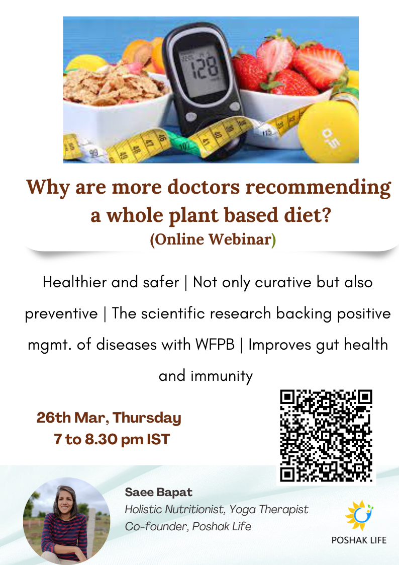 Why are more doctors recommending a whole plant based diet? When : 26th Mar, Thu, 7 to 8.30pm Where : online on Zoom Nowadays, we find more doctors talking about diet and lifestyle modifications to improve health conditions. And a whole plant based diet is often recommended, with some leeway. Even so, it is a … Continue reading Why are more doctors recommending a whole plant based diet?: A webinar